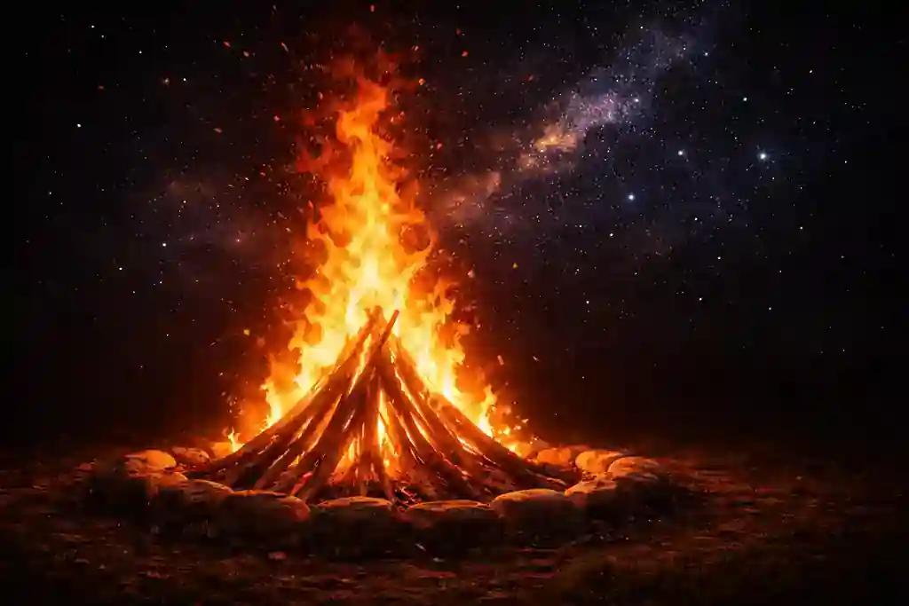Ceremonia de rapé en el fuego sagrado al anochecer